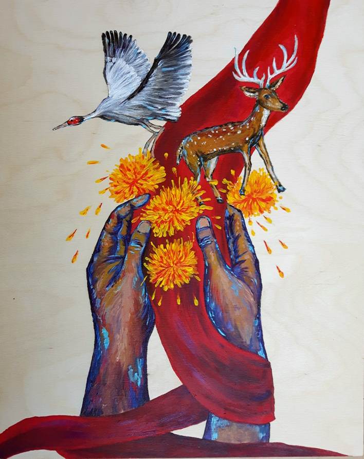 Figure 19: The Departed, acrylic on plywood, 16”x20,” 2018