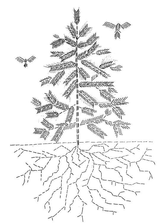 Figure 13: (From a previous submission to the City of Surrey, 2025) “Through Generations.” Preliminary concept for an outdoor metal washroom gate design. This design aims to honour the natural and urban environment, and contribute to cultural vibrancy in the community. It tells the story of how nature inspires people to connect through community with care and playfulness and features a phulkari pattern technique that uses “stitches” to represent natural forms, both as a use of a traditional Panjabi art form in a contemporary practice and also as a representation of how small individual parts come together as part of a whole. The “stitches” would be suitable for the laser cut panels. The proposed design is an image of a local tree that grows up into the sky and down into a connective root system, surrounded by birds, representing the continuous story of people and nature using care through the generations to nurture life.