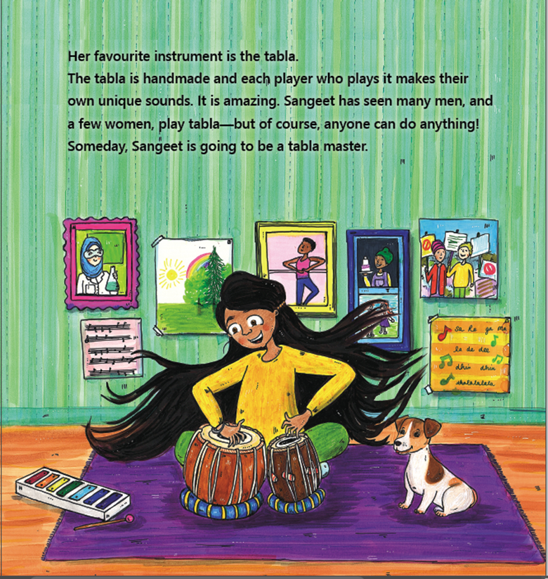 Figure 16: Sample illustration from Sangeet and the Missing Beat. Marker and ink on paper. 2022.